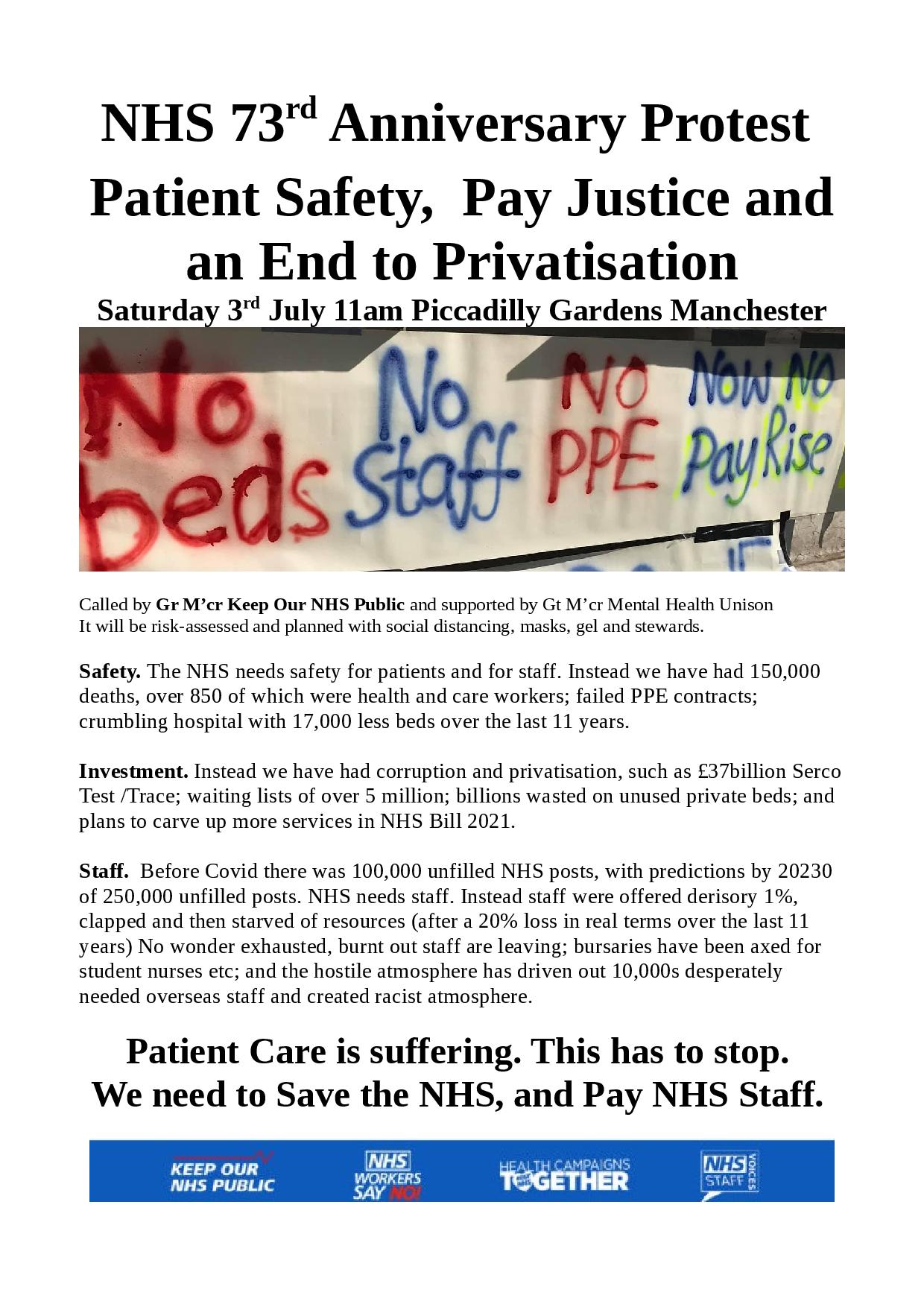 Saturday 3rd July 11am Piccadilly Gardens Manchester