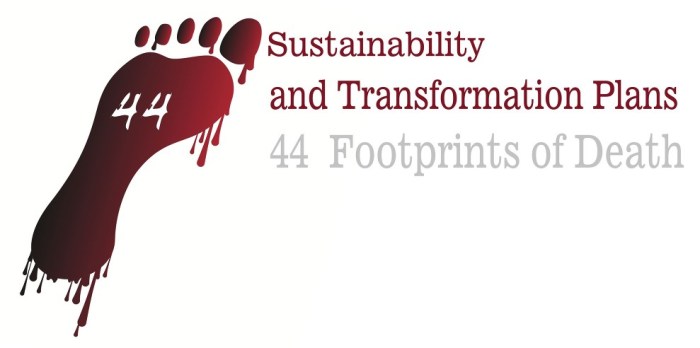 Many, many thanks to all of you who have written to councillors to request the Sustainability and Transformation Plans and appendices be published on the Council websites. https://you.38degrees.org.uk/petitions/stop-the-plans-to-dismantle-our-nhs Resistance to publishing the financial, activity and workforce appendices to the plans is widespread, and even an FOI has been rejected. The shift away from NHS accountability … Continue reading STP National Day of Action, 3 December 2016