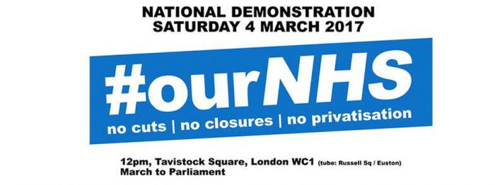 HCT is calling a national demonstration in London on 4th March . We believe the time has come to demonstrate the breadth and depth of support for the NHS and anger and opposition to the destructiveness of Tory policies. Sat 4th March is going to be a big demonstration. With Britain’s biggest union, Unite, already … Continue reading National NHS Demonstration 4th March 2017