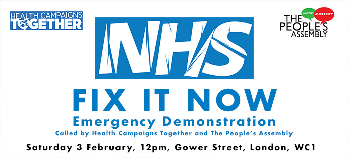 Details of protests: Wigan: Friday 19 January, Wigan town hall (time TBC) Trafford: Tuesday, 23rd January 6.30 pm, Trafford Town Hall, Talbot Road Stretford M32 0TH Manchester: Tuesday 30 January, 10am Manchester town hall All around Greater Manchester a series of demonstrations demanding action to fix the NHS crisis are now being planned. Lobbies outside … Continue reading NHS Crisis Protests – Wigan/Trafford/Manchester